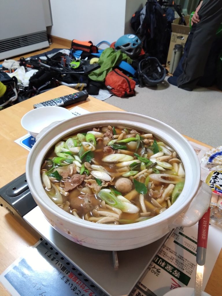 ペンションウッディロッジの夕食が芋煮鍋で最後のカレーうどんのしめもあわせて美味しい。