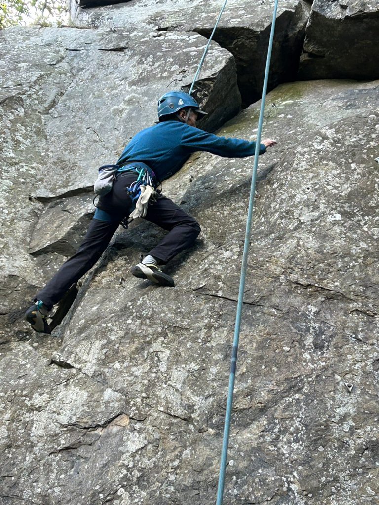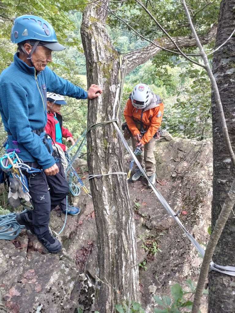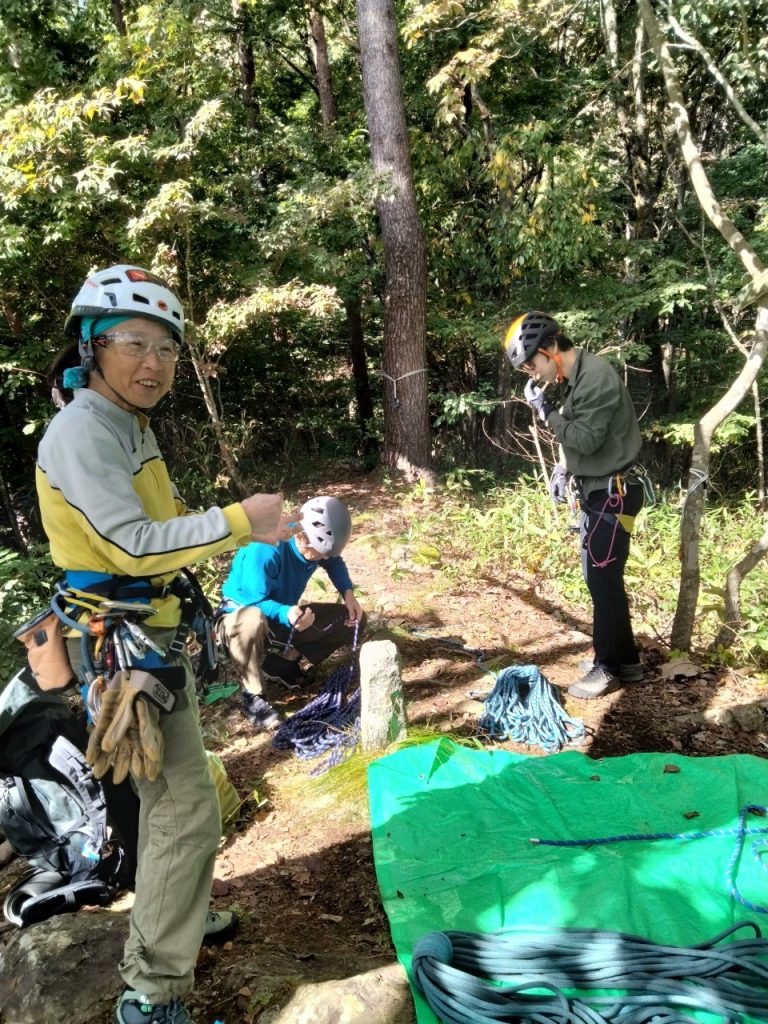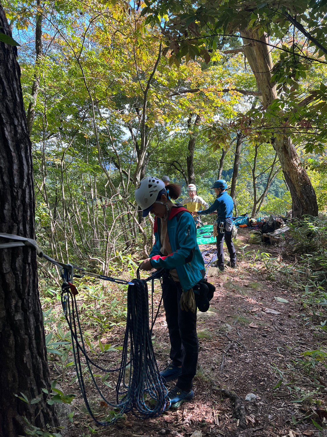 北川目の岩場でロープワークの基本、たたみ方、キンクしない出し方を学びました。ダブルロープのリードとフォローの確保の仕方、2人、3人パーティーでの違いも実践。ロープさばきに四苦八苦????喉がすぐカラカラになりました~