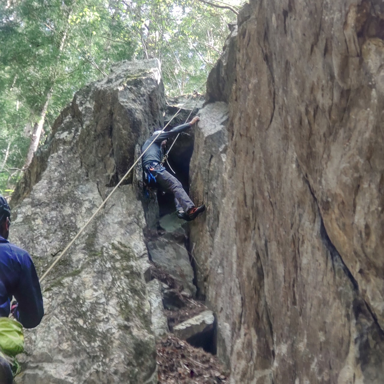 南川目の岩場の左奥にあるチムニーのコケ落とししました????