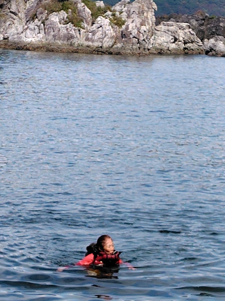 風がでてきてうねりが高いので、予定より近い場所で休憩してホットコーヒーを頂きました。